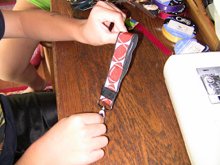 During the week of Camp Gramp, the kids do many crafts. We try to make the crafts meaningful and useful, so we spend all year in search of the coolest things to make. This key chain (found on Ucreate) ranks right up there. It is useful, and the process teaches the kids how to use a sewing machine. All that is required is a few straight lines of stitching, so the kids are exposed to using the machine without the frustration. (I can't be the only crafter who has to get the sewing machine manual out every time I start a new project!!)