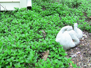 2. The mint and oregano are still behaving enough that I can still see my little bear statue. By the end of summer, they'll be duking it out in this corner of the shed garden. (See the mint in the front and oregano in the back.)