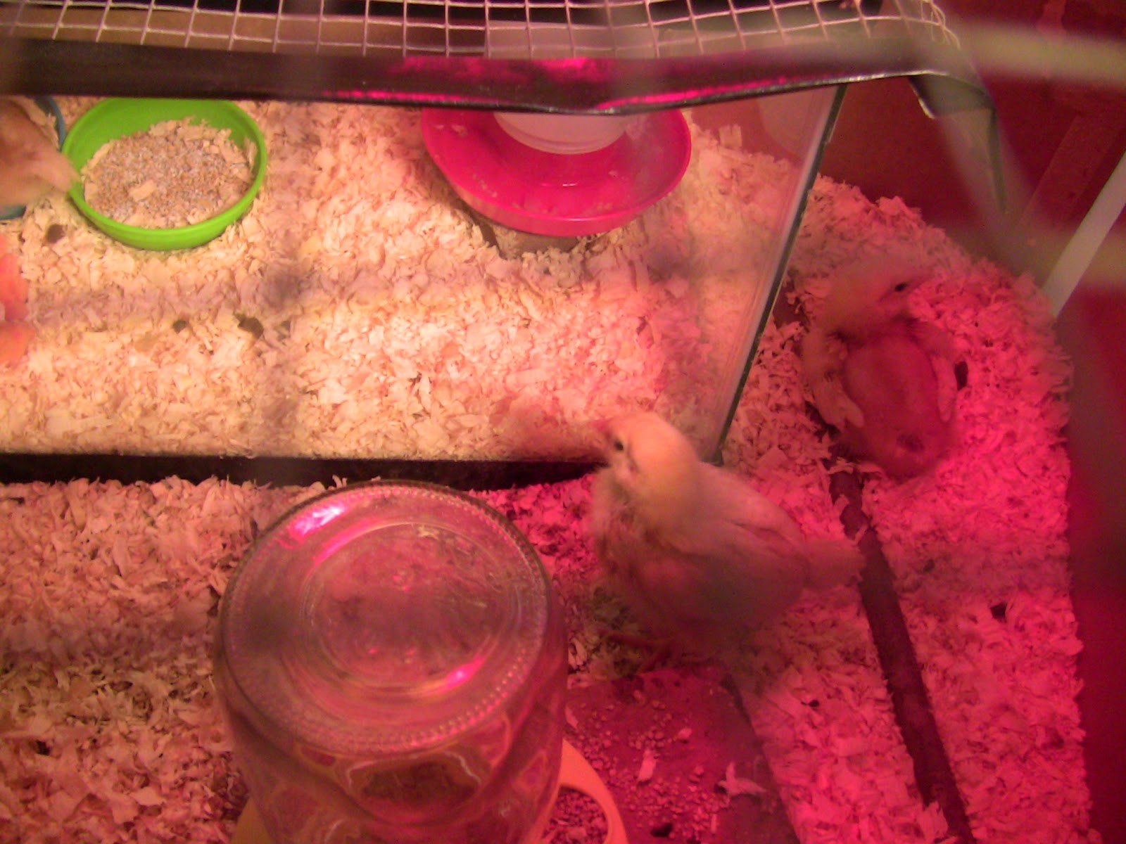 Katniss has made a fantastic recovery and is now out of the fish tank and back in the huddle with the other two chicks.  She is now using her foot again almost completely normally and we couldn't be happier for our Chick on Fire.