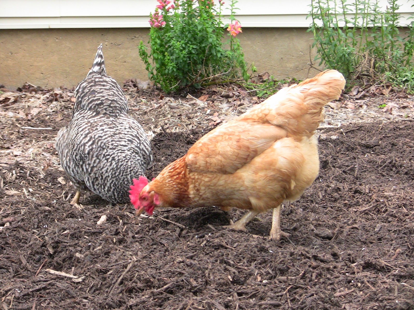 They LOVE eating bugs from the mulch.