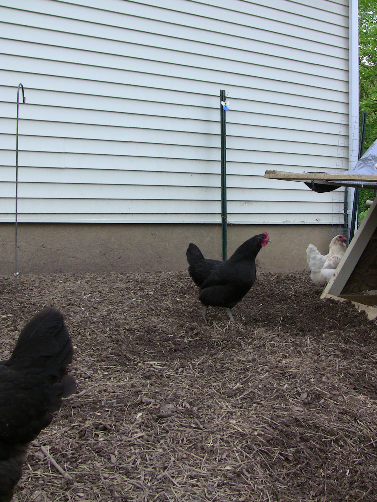 Here you can see the pole formerly known as Useless now holding the tiny Red Faced Chicken Fairy to overlook our Empire of Dirt.  No wonder I get the Nine Inch Nails song in my head whenever I visit the chickens. It all makes sense now.  (And if you haven't heard Empire of Dirt covered by Johnny Cash, check it out.)