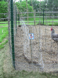 Besides laying beautiful eggs each day for us, our chickens are fantastic gardeners.  They till one garden plot each season for us (they follow the squash garden and the Italian garden follows them), turning the soil, eating all the weeds and spent plants, and removing bugs who have overwintered in the soil.  This year, they've also agreed to monitor the pole beans for us.