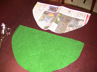 I first made a template from newspaper and cut felt to match. The straight side of the semi-circle is 18 inches long. The highest point in the arch is 11 inches.