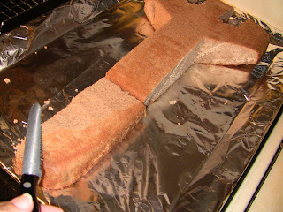 Using a serrated knife, I sliced off the edges and top to make the two parts match.