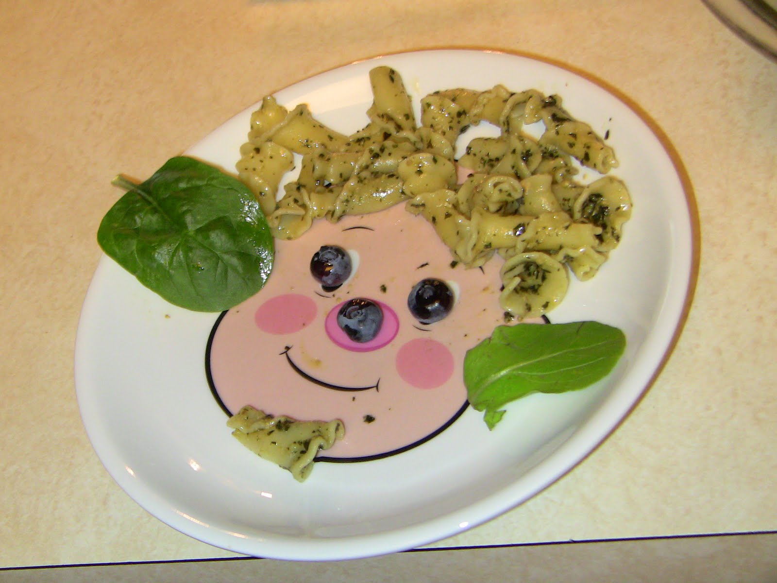 Tonight we used basil (frozen in an ice cube tray from our harvest last summer), toasted pine nuts, olive oil, Parmesan cheese, and a little salt and pepper. (Nothing tastes better than fresh basil pesto, but our little basil plants are just getting started this summer.)